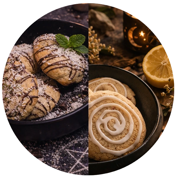 Rien n’est figé : les spécialités changent au rythme des lunes, des saisons et de mes élans créatifs. Chaque création est un petit sort gourmand, façonné avec soin, intuition et un soupçon d’enchantement.