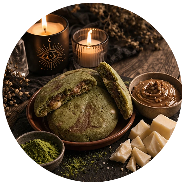 Le chocolat blanc et le praliné associé au matcha adoucit son amertume et offre une touche gourmande. Résultat : un snack à la fois stimulant et réconfortant, idéal pour une pause l’après-midi
